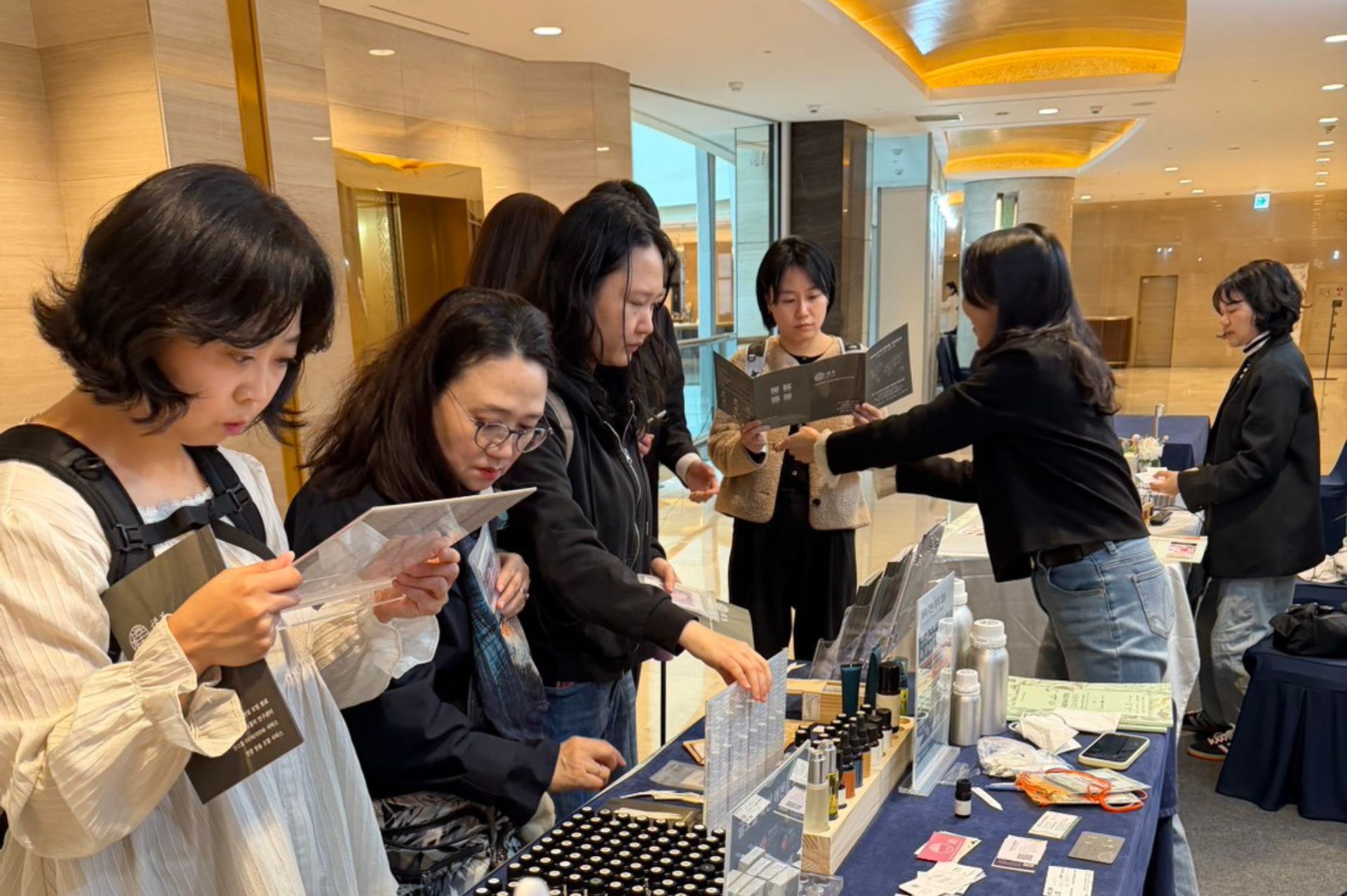 除商務洽談外,樸真亦著重於體驗設計。現場開放多款單方精油進行嗅聞體驗,讓客戶能直接感受天然原料的層次與純淨度,提升決策效率。